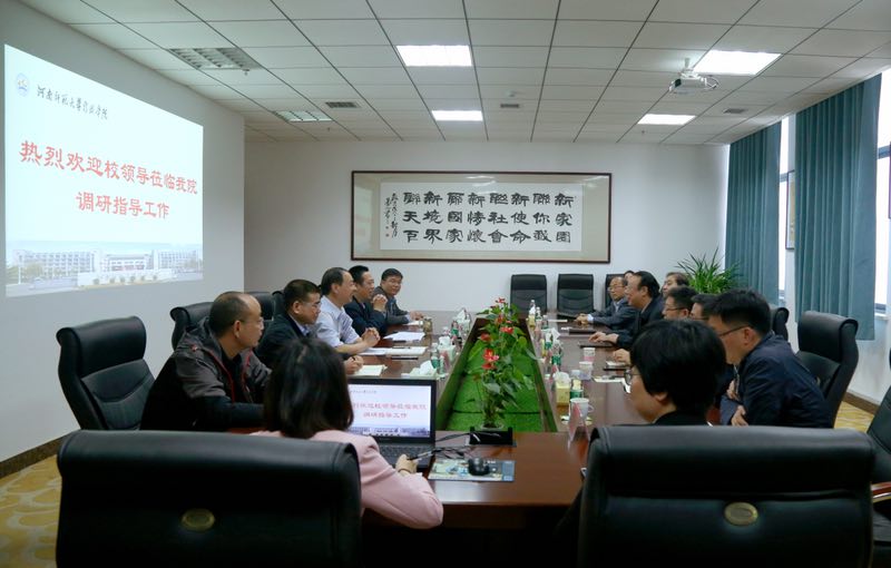 新联学院院长金绪泽向赵国祥一行汇报了学院的办学基本情况、学生管理工作、后勤保障工作、事业发展存在的问题及以后的工作思路,并基于学院未来发展提出了相关建议。