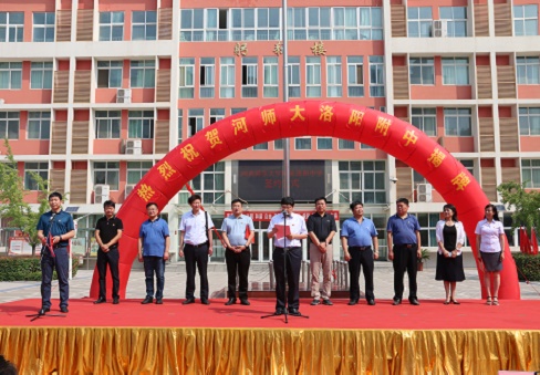 上午十时,仪式正式开始,李学志、洛龙区区长韩建军、附属洛阳中学校长武春香先后讲话。我校基础教育集团办公室主任张银付、洛龙区教体局副局长刘京波代表双方在合作协议上签字。李学志、韩建军两位领导为学校揭牌。