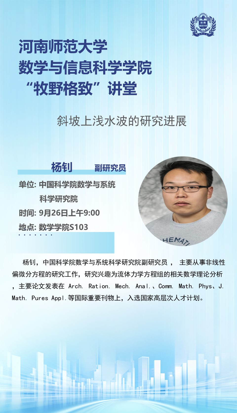 中国科学院数学与系统科学研究院杨钊副研究员将应邀做客“牧野格致”讲堂