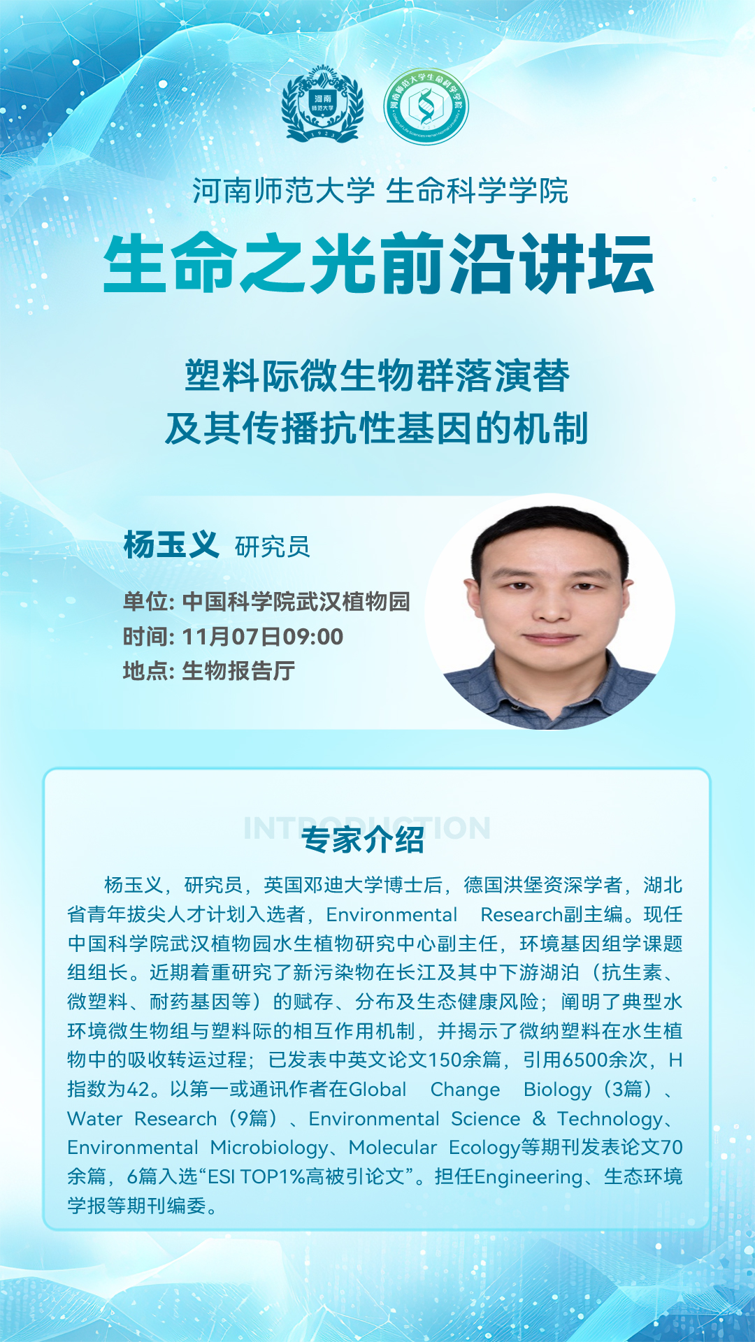 中国科学院武汉植物园杨玉义研究员将应邀做客“生命之光前沿讲坛”
