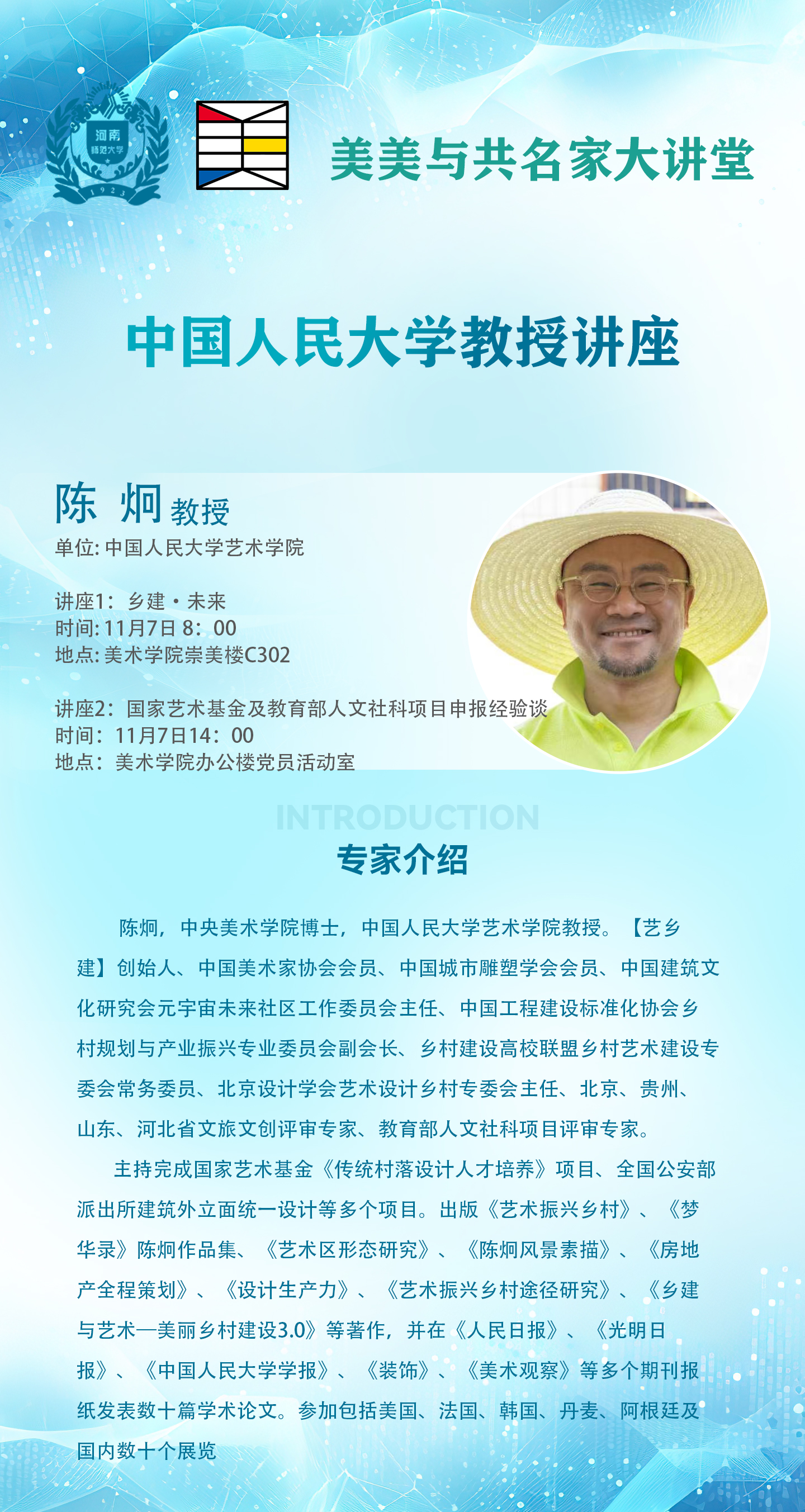 中国人民大学陈炯教授将应邀做客“美美与共名家大讲堂”