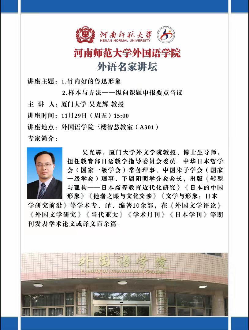 厦门大学外文学院吴光辉教授将应邀做客外语名家讲坛