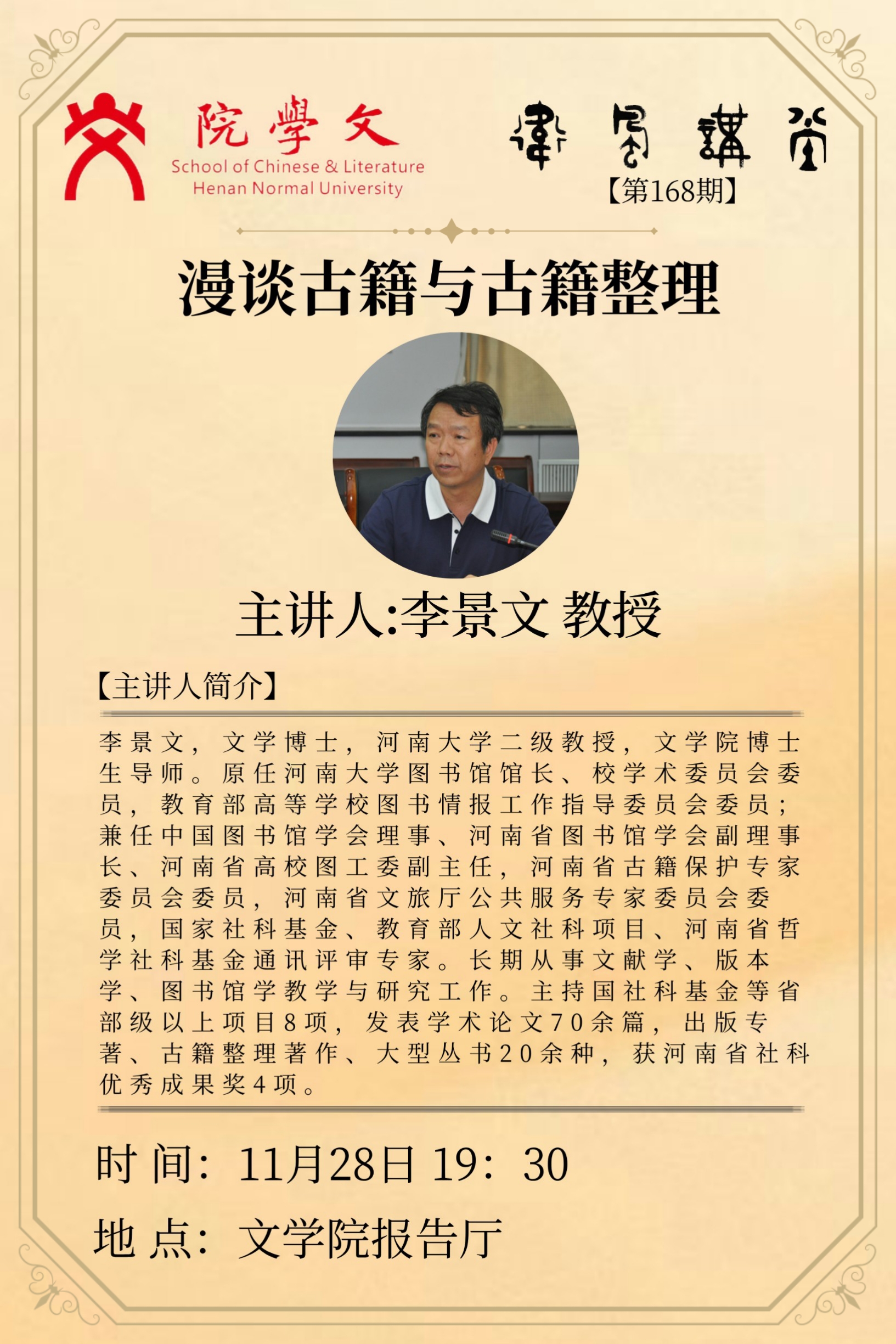 河南大学李景文教授将应邀做客“卫风讲堂”