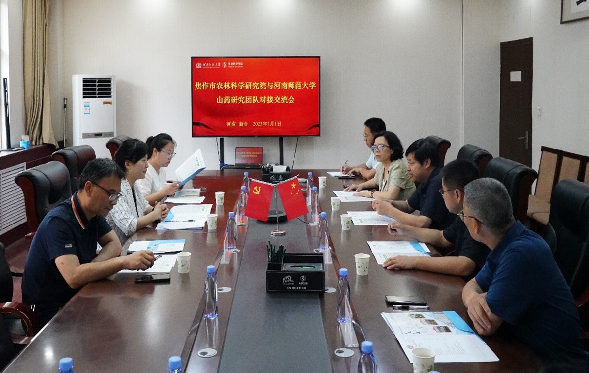 余国营对李艳芬一行来访表示热烈欢迎,全面介绍了生命科学学院的百年办学历史、人才培养、学科专业、科研发展等情况,充分肯定山药团队取得的成绩,强调山药团队的研究不仅创造知识而且应用知识服务地方社会经济发展,切实践行了将论文写在祖国大地上的要求。李艳芬对生命科学学院的热情接待表示衷心感谢,并介绍了焦作市农林科学研究院的发展历史、运行机制和基础平台等情况。