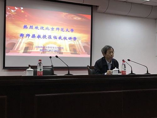 为了进一步提升必威官方首页手机版和必威手机app下载安装水平和人才培养质量,近日,我校历史文化学院特邀合作共建单位北京师范大学历史学院博士生导师、国家社科基金评审专家、原北京师范大学校党委副书记兼副校长、中国史学会副会长郑师渠教授莅临历史文化学院指导工作,并受到了我校校领导的亲切接见。10月25日上午,郑师渠在学院二楼会议室进行座谈。历史文化学院党委书记王霞、我校学报主编王记录、学院相关学科骨干教师、研究生、本科生等共30余人参加了座谈。座谈会上,郑师渠结合自己数十年从事教学、科研以及领导工作的经历,针对与会师生提出的一系列问题,进行了耐心的解答与指导,使与会师生深受启发与鼓舞。当日下午,郑师渠在勤政楼第四会议室作了题为“南京临时政府成立初期自由主义知识分子的政治心态”的学术讲座。学院相关负责人及相关专业骨干教师、研究生、本科生等共200余人聆听了此次讲座。讲座由历史文化学院院长巨永明主持。在讲座中,郑师渠运用心理史学理论与方法,结合具体的政治形势和时代特征,重点通过剖析胡适、罗隆基、蒋廷黻等自由主义知识分子代表人物,以及天津《大公报》《新月》杂志等自主派刊物的政治立场、政治主张、政治原则等政治观念的发展和变化及历史动