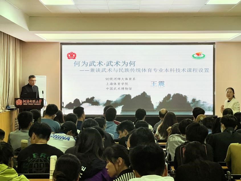 5月11日下午,上海体育学院中国武术博物馆副馆长、博士生导师王震教授应邀为体育学院师生作题为《何为武术,武术为何——兼谈武术与民族传统体育专业课程的设置》的报告,学院相关负责人及部分师生共120余人聆听了此次报告。报告由学院党委副书记王芳主持。报告上,王芳提到王震是我校杰出校友,并向参会人员介绍了他的基本情况。王震从何为武术、武术为何、武术与民族传统体育专业课程的设置三个方面入手,讲述了中华武术文化的时代内涵与课程设置,又运用丰富的素材、案例,通过理论与实践相结合的方式,为学院师生带来了一场精彩的学术讲座。整个讲座过程贯穿了王震对治学认真、坚持的态度,为在座的师生明确了武术传播的目标,指明了人生勇往直前的方向。讲座结束后,多位师生就武术文化等相关问题与王庆伟教授进行了深入交流。相信通过本次讲座,学院师生会对中国武术文化有更为理性的认识和思考,也为学院今后在武术民族传统体育方面的发展提供了更为丰富的创新素材和科研教材。专家简介:王震,博士,教授,博士生导师。上海体育学院中国武术博物馆副馆长。上海市浦江人才,美国伊利诺伊大学香槟分校高级访问学者。健身气功七段,首批中国健身气功涉外培训讲师,