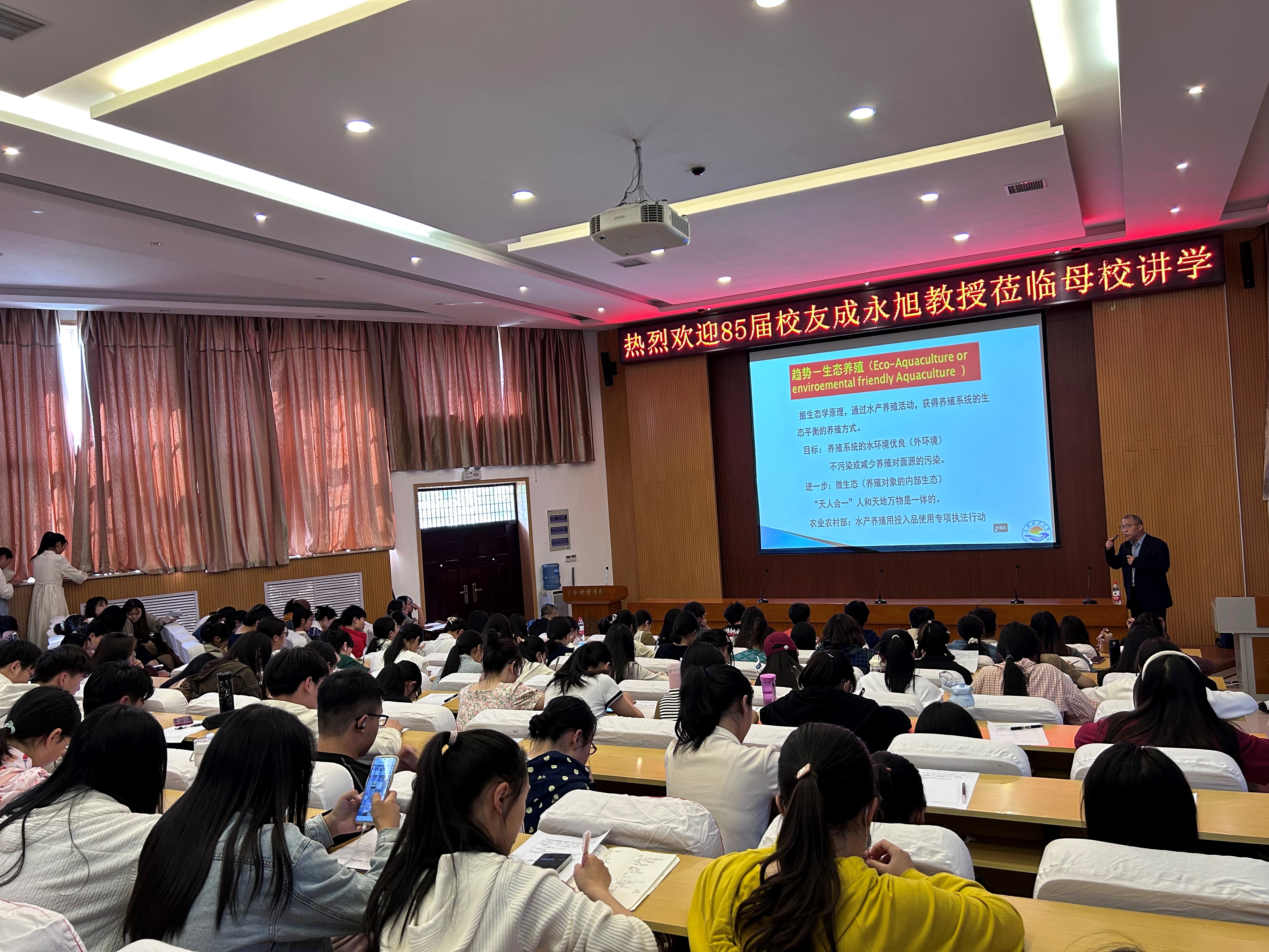 5月8日下午,应生命科学学院邀请,上海海洋大学教授成永旭莅临我校讲学,并在生物报告厅作题为“我国大闸蟹养殖发展趋势及大闸蟹食文化”的学术报告,学院师生200余人参加。报告会由副院长陈建军主持。成永旭以我国大闸蟹养殖现状、趋势以及大闸蟹在我国饮食历史文化上的地位开篇,主要介绍河蟹的生命史和栖居方式,分析河蟹的食性及组织学研究结果,分享大闸蟹食文化的悠久深厚知识,凸显对大闸蟹的养殖研究是食用与文化的相互交融。本次报告内容丰富,有助于与会人员对生命科学领域最新科研动态的了解,是科学研究与现实生活交相辉映的深刻体验,具有很强的实用性。专家介绍:成永旭,生物系85届校友,现为上海海洋大学水产与生命学院二级教授,博士生导师,主要从事河蟹养殖和稻渔种养方面的研究,获得国家科技进步奖二等奖(排名2)、上海市科技进步1等奖(2次,排名1)等多项奖项。先后入选“国家百千万人才工程和有突出贡献的中青年专家”“上海市领军人才”“上海市优秀学术带头人”“上海市曙光学者”等,享受国务院政府特殊津贴。特别是近些年带领团队在台湾河蟹养殖的推广,受到广泛关注。近些年发表相关论文150余篇,其中SCI论文30余篇,获得相