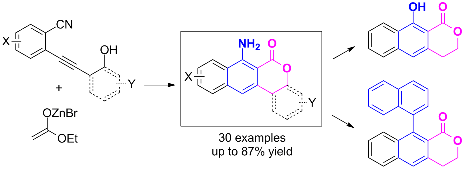 10) Yan He, Xinying Zhang and Xuesen Fan*. Synthesis of Aminonaphthopyranones and Aminonaphthochromenones by Blaise-Reaction- Initiated Cascade Procedures. Asian J. Org. Chem., 2014, 3, 1284-1291.