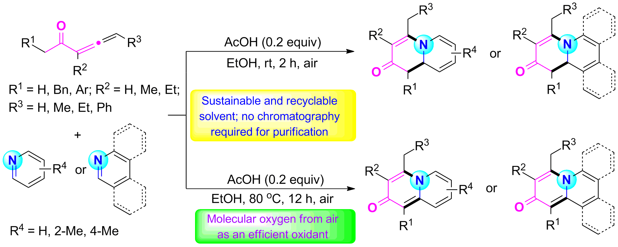 1) Xuesen Fan*, Yan He, Xinying Zhang, Jianji Wang. Sustainable and selective synthesis of 3,4-dihydro quinolizin-2-one and quinolizin-2-one derivatives via the reactions of penta-3,4-dien-2-ones. Green Chem., 2014, 16(3), 1393-1398.