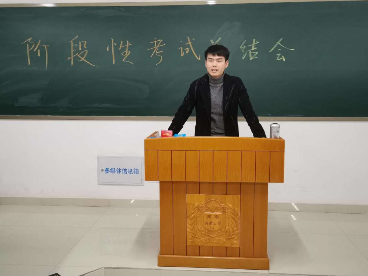 副班主任邵子萱担任本次会议主持人。大会伊始,由2018级王秀谷为同学们进行考试总结分析,她分别从法语拼读规则、语音语调、考生考试情绪三个方面对考试过程中出现的问题进行分析,深入透彻地帮助同学们整理复习思路,优化学习方法。2019级法语二班戚慧琳、郭家梁,法语三班左嘉樾作为成绩优异学生代表进行发言,三名同学从时间规划、学习兴趣、知识积累、努力程度等几个方面来分享自己所取得优异成绩的方法,其中,郭家梁用同学们在学习过程中经常因为手机消息而分心的现象来说明高效利用时间对学习的重要意义。接着,通过法国布雷斯特商学院初试的17级陈奕晓为同学们做经验分享,他着重提到劳逸结合的重要性,他用自己骑单车放松的例子向同学们提出每个人都要有自己的放松方式。而后,通过法国佩皮尼昂大学初试的17级杨嘉伦则着重于法语学习的难度等方面做了分享,如果大一大二在打基础时掉队,那么大三大四就一定跟不上,并从大学毕业后未来生活这个层面说明努力学好法语的现实意义,两位学长的真诚的分享博得同学们的热烈掌声。2019级法语二班王煦宣读《国际教育学院19级法语专业学习倡议书》倡议同学们提高自觉性,主动学习。大会最后,辅导员韩舒作了总结,他对法语专业同学们学习态度表示满意,并鼓励同学们再接再厉,为专四考试做好充分准备。