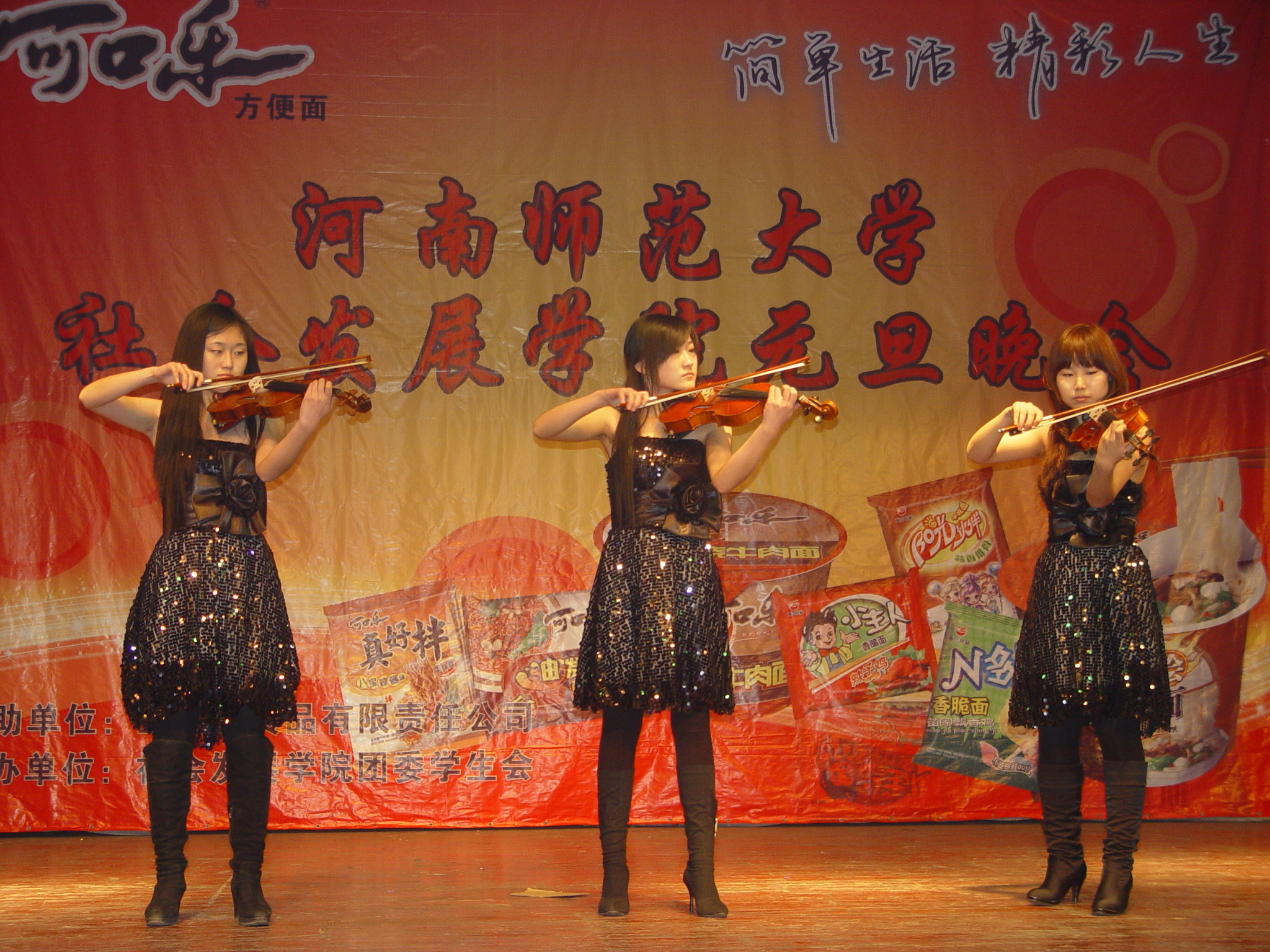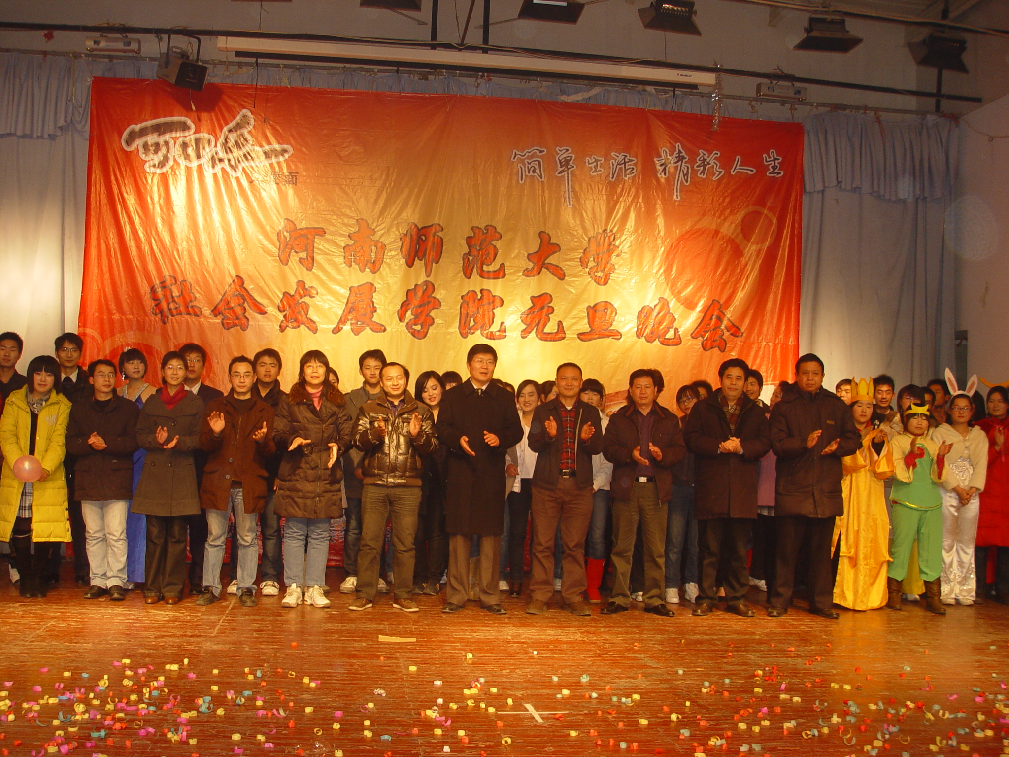 辞旧迎新庆元旦,师生同乐贺新年。 整场晚会高潮迭起,精彩不断。晚七点半,晚会在一段充满异域风情的华丽舞蹈中拉开帷幕。王记录院长向全院师生发表了热情洋溢的新年贺词,他对我院在2009年取得的一系列骄人成绩给予了充分肯定,并希望全院师生能够再接再厉,在新的一年里创造更大的辉煌。在一首深情的《season in the sun》演唱之后,精彩节目一一呈现。小品《新闻条播》以其幽默风趣的台词、夸张到位的表演赢得了台下阵阵掌声;接下来的街舞串烧和古筝表演,展现了当代大学生的青春活力和多才多艺,赢得了现场的尖叫和共鸣;而由李娜、李洋两位东北同学表演的二人转《唐僧路过女儿国》尤其引人注目,风趣搞笑的语言、精彩多变的表情、经典夸张的语气,赢得了现场持续的爆笑声和喝彩声,将整场晚会推向了高潮;09历史教育学班的三句半《历教迎新年》更让大家仿佛跟随他们行走在师大校园内外。 “春华秋实”,是我们对于全院师生一年生活的总结和新一年的希冀,同学们表示要将今晚的活力化为考场的动力,为本学期、为精彩的2009年画上圆满的句号。 (社会发展学院 阮 超 邢 威) |