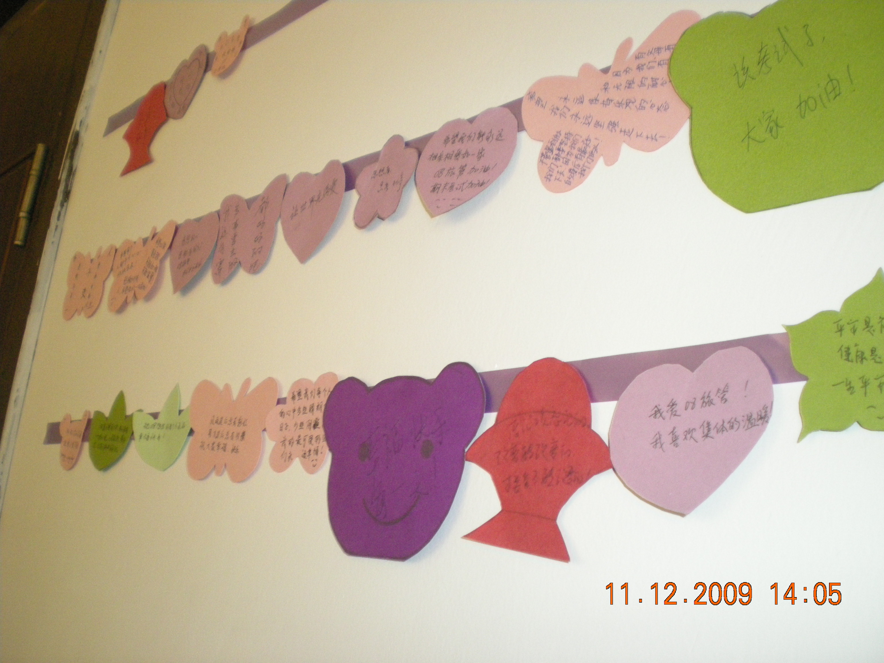 2009年12月11号下午,08旅管全体同学欢聚于我院406多功能报告厅,共同度过了一个和谐美好的下午。 本次班级活动的主题围绕感恩月展开,首先生活委员宣读感恩月活动倡议书,倡议同学们要时刻心存感恩,感恩社会、感恩亲人、感恩朋友、感恩自然……紧接着,同学们积极踊跃参与并表演了一系列节目,现场气氛顿时热烈,尤其是同学自发表演的小品将本次活动推向高潮。然后是同学自由发言环节,用真挚的话语表达了对班级、老师和同学的感恩之情。最后全班同学共同观看了《2012》,同学们在心灵得到震撼的同时,也在思索我们如何保护赖以生存的地球,让我们人类的科技真正的服务人类。其中,本次活动的亮点还在于组织同学们将最想感恩的人、最想说的感恩的话写在卡片上,并贴于墙上展览,最终由生活委员长久保留。 通过本次活动,加强了同学们之间的交流,增进了彼此间的感情,使社发院08旅管这个大家庭更加温馨,更加和谐,也同时推动了我院班级精神文明建设的发展。 |