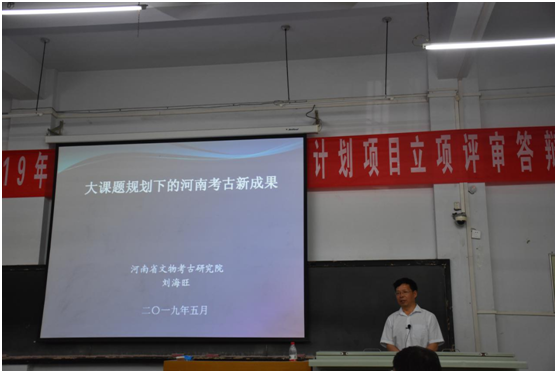 应学院邀请,5月27日15:00-17:00,河南省文物考古研究院刘海旺研究员莅临西校区新554-103教室,作题为“大课题规划下的河南考古新成果”的学术讲座。讲座由苏全有院长主持,部分考古学骨干教师、研究生、本科生近百人参加了本次讲座。
