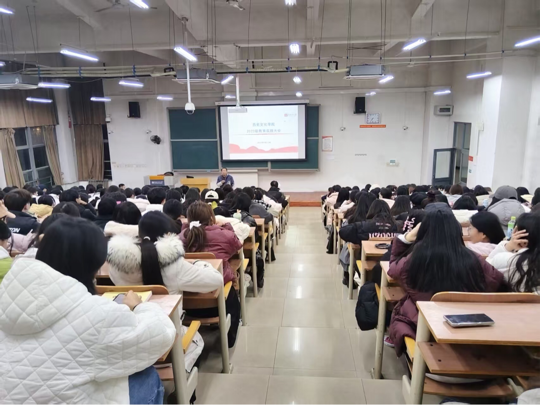 为进一步提高师范生实习质量,明晰实习目标与规范,2月17日晚上七点,历史文化学院于求是中楼202召开了2022级师范专业本科生教育实践大会。学院相关负责人及2022级全体师范生参加本次会议。
