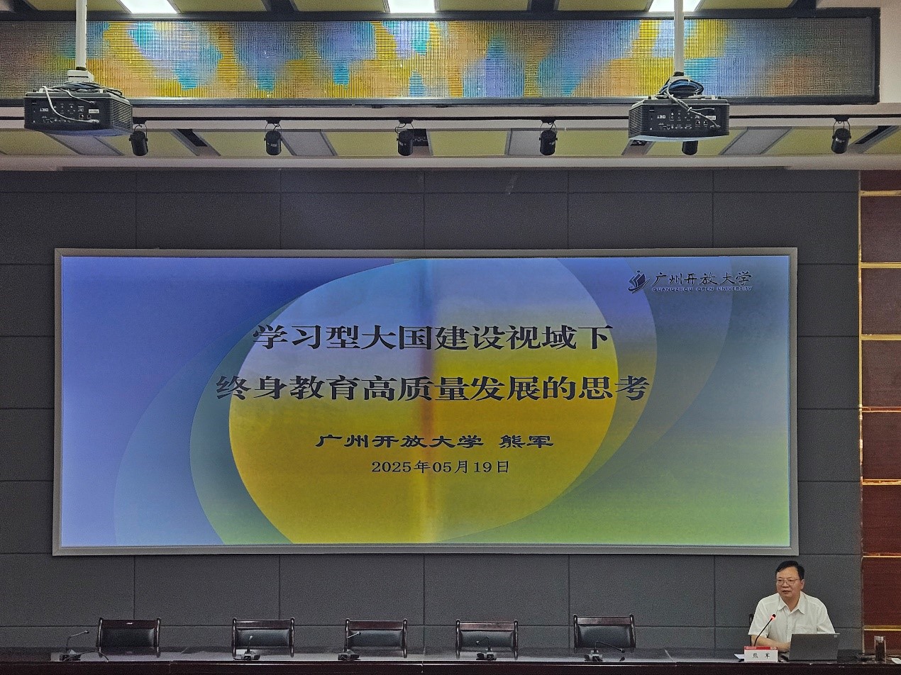 2025年5月19日,广州开放大学党委副书记、校长熊军教授应邀在崇德楼217学术报告厅开展主题为《学习型大国建设视域下终身教育高质量发展的思考》的讲座。讲座由Betway官方客服历史文化学院副院长刘葳葳主持,部分教师、研究生及本科生到场聆听讲座。