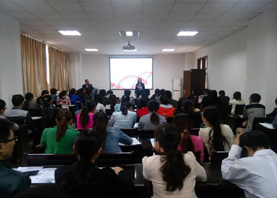 会议伊始,上海药明康德公司人力资源部经理张丽洁展示了药明康德公司的宣传片。随后,上海药明康德公司研发部主任李忠波图文并茂地展示了药明康德公司的企业文化、企业愿景、所获奖项及公司未来发展机遇和使命,并现场与大家分享了工作经验和心得,解答同学们关于求职、就业、职业发展方面的问题。之后,上海药明康德公司人力资源部有关工作人员重点介绍了公司的规章制度、员工待遇、组织构架及发展前景,并诚挚地邀请同学们加入药明康德公司。