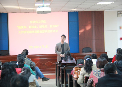 勇担新使命,明确新标准,提升新境界,争做新贡献。为深入贯彻落实“三严三实”专题教育要求,进一步推进省部共建工作,11月3日下午,我院“新使命、新标准、新境界、新贡献”大讨论活动动员暨省部共建工作推进会在化学北楼五楼会议室召开,学院领导班子和全体教职工参加了会议。会议由院党委书记孔国庆主持。