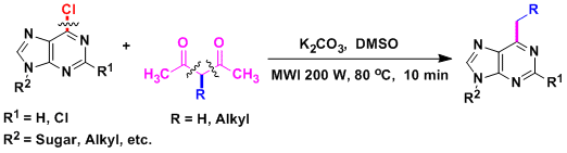 9. Hai-Ming Guo,* Yu Zhang, Hong-Ying Niu, Dong-Chao Wang, Zhi-Liang Chu, and Gui-Rong Qu,*Microwave Promoted C6-alkylation of Purines through SNAr-based Reaction of 6-Chloropurines with 3-Alkyl-acetylacetone, Org. Biomol. Chem.,2011, 9, 2065-2068.