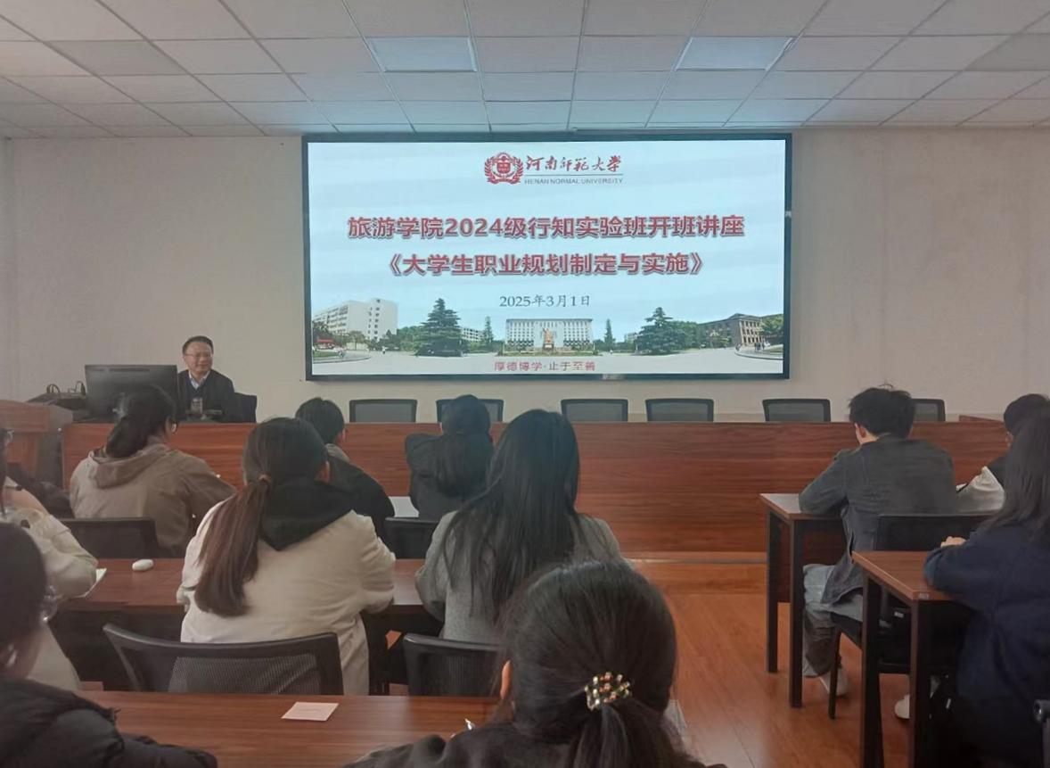 31日下午,旅游学院2024级行知实验班于学院三楼行知大讲堂举办《大学生职业规划制定与实施》专题讲座。旅游学院党委书记冯峰、副院长付强、2024级班主任孟帅康及实验班全体同学参加此次讲座讲座由孟帅康主持。