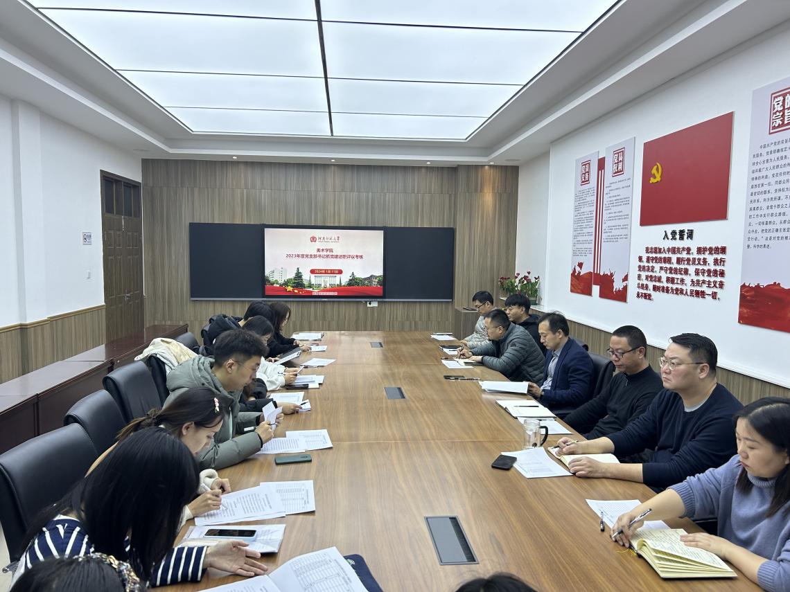 1月11日下午,美术学院党委在党员活动室召开2023年度党支部书记抓党建工作述职评议考核会议,学院党委委员、党支部书记、教师和学生代表参加会议。会议由学院党委书记华锋主持。