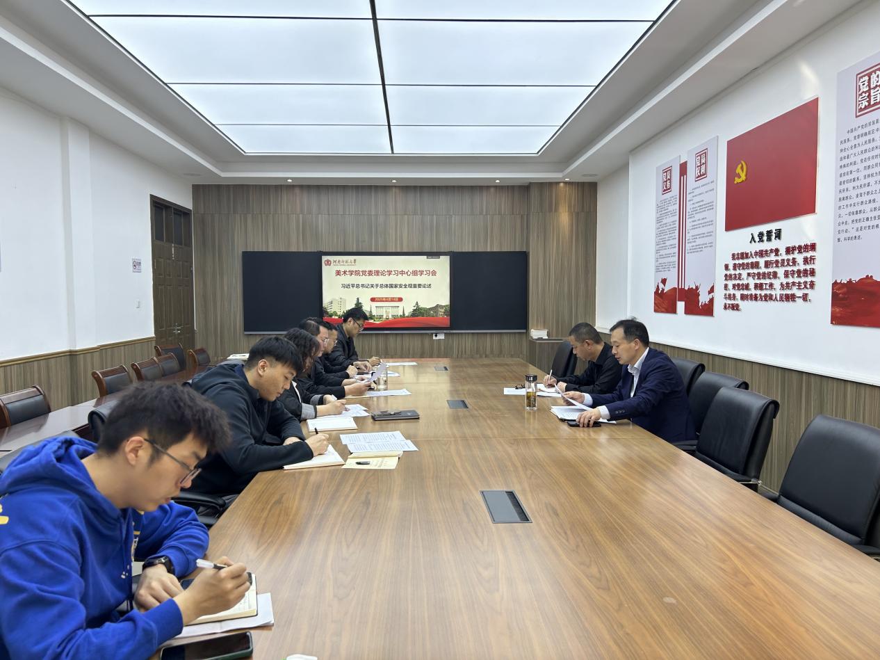 4月14日,美术学院召开党委理论学习中心组学习会议,专题学习习近平总书记关于总体国家安全观的重要论述,...