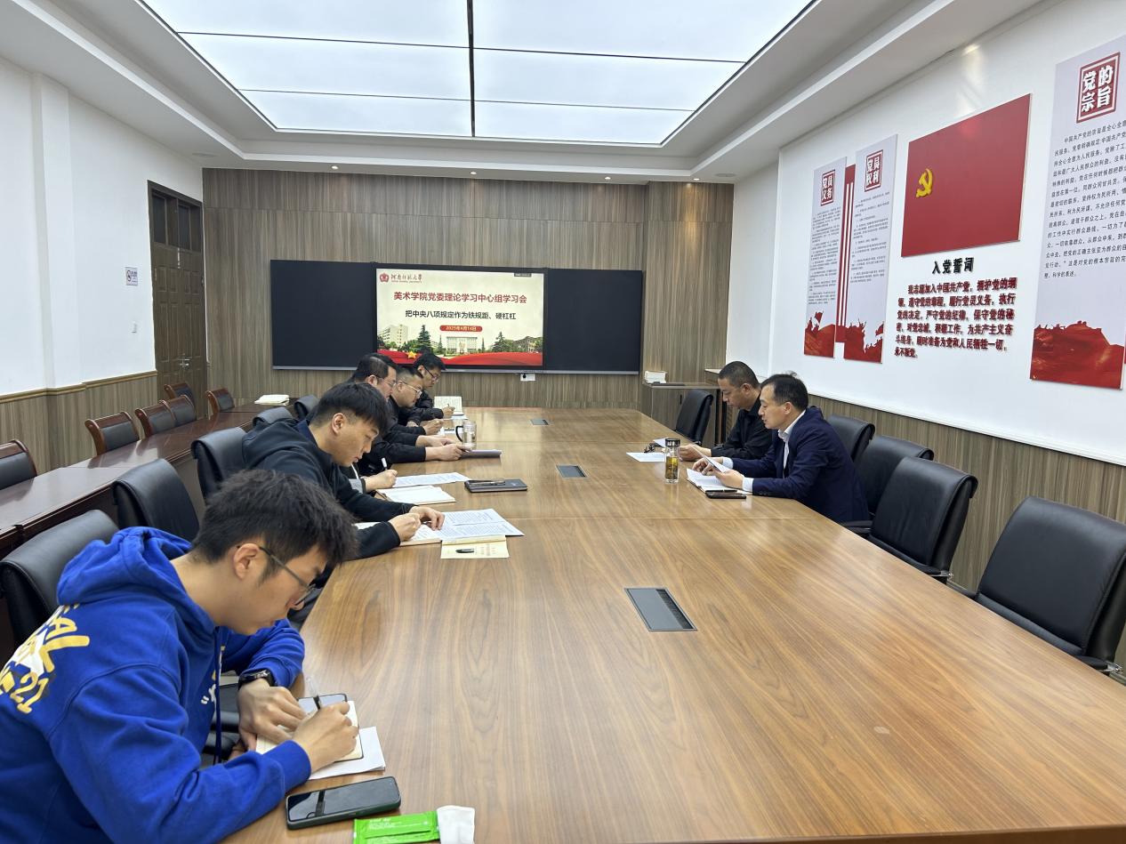 为持续深化作风建设,推动中央八项规定精神入脑入心、见行见效。4月14日,美术学院召开党委理论学习中心组...