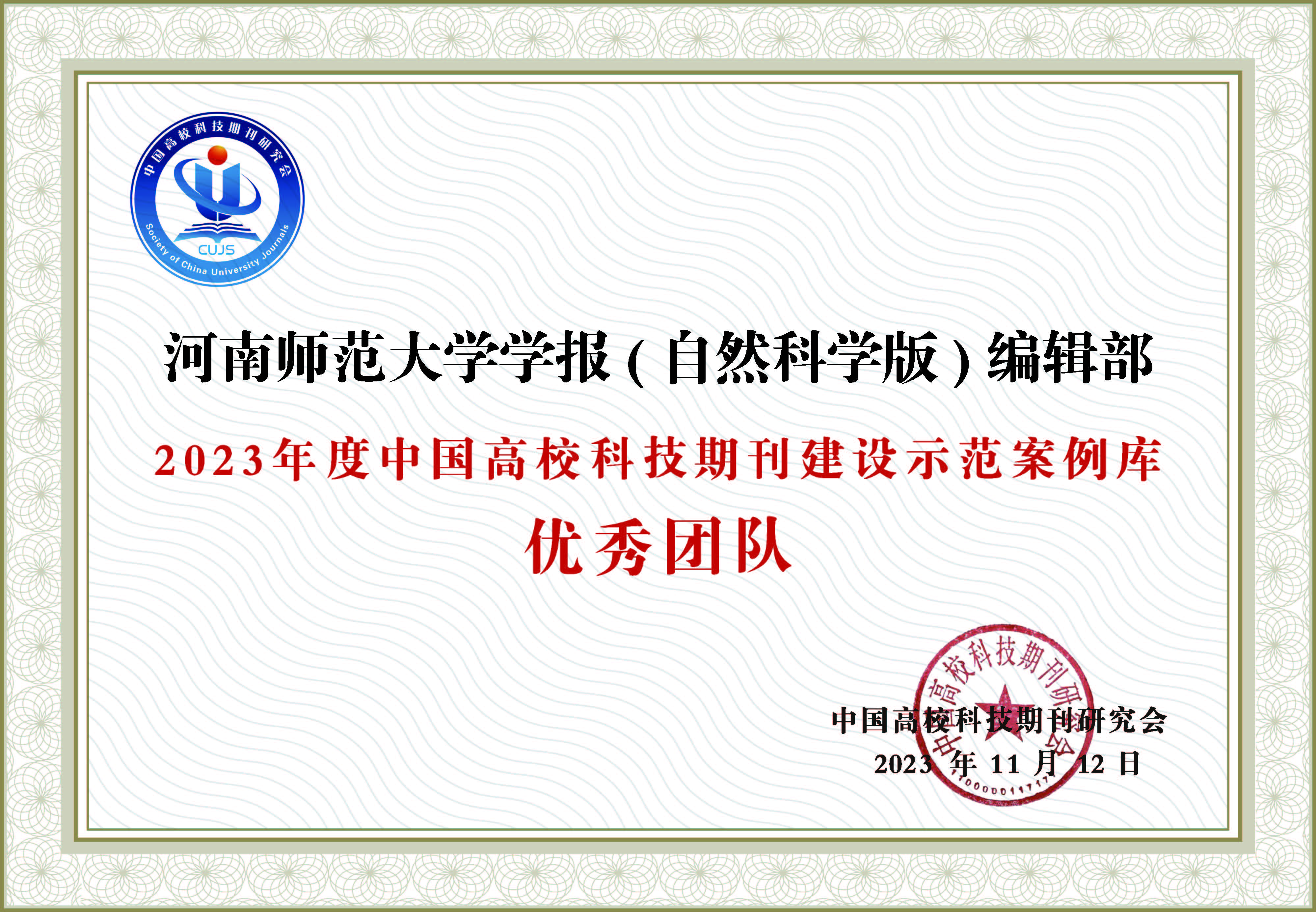 Journal of Henan Normal University (Natural Science Edition) was established in 1960 as“Joint Journal of Henan Institute of Chemical Technology and Xinxiang Teachers College at first. The Journal is a public publication approved by National Press and Publication Administration, and is a comprehensive academic journal sponsored by Henan Normal University. It is in Genaral Catalogue of Chinese Core Periodicals(2004, 2008, 2011, 2014, 2017, 2020 & 2023), and in WJCI(2021,2022,2023).It has successively won reputations such as“The Six-session Excellent Science and Technology Journal of Henan Province”, “The Distinctive Science and Technology Journal of China's Higher Education”, “The Excellent Edit Quality Award of Science and Technology Journals of National Higher Education”, “The Excellent Science and Technology Journal of China's Higher Education”, “The Top 20 Science and Technology Journals of Henan Province”, etc. The main disciplines of academic papers covered by the Journal are: mathematics, physics, electronic information science, chemistry, environmental science, life science, computer science, sports, etc.Welcome your contribution