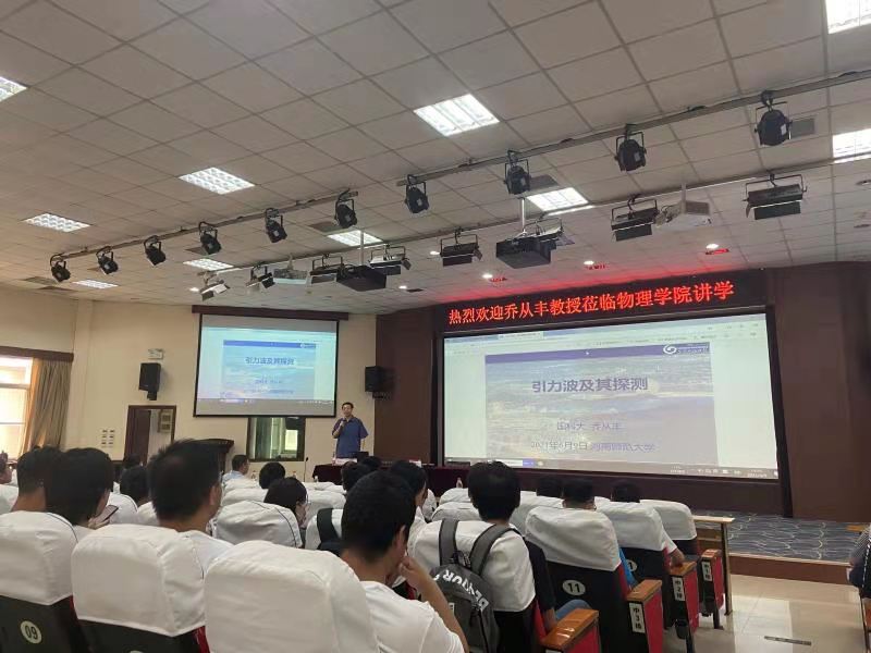 6月9日下午,应我校物理学院邀请,中国科学院大学乔从丰教授在物理北楼三楼学术报告厅以《引力波及其探测》为题作了学术报告。学院相关学科带头人、青年骨干教师、研究生和本科生近百余人聆听了本次报告。