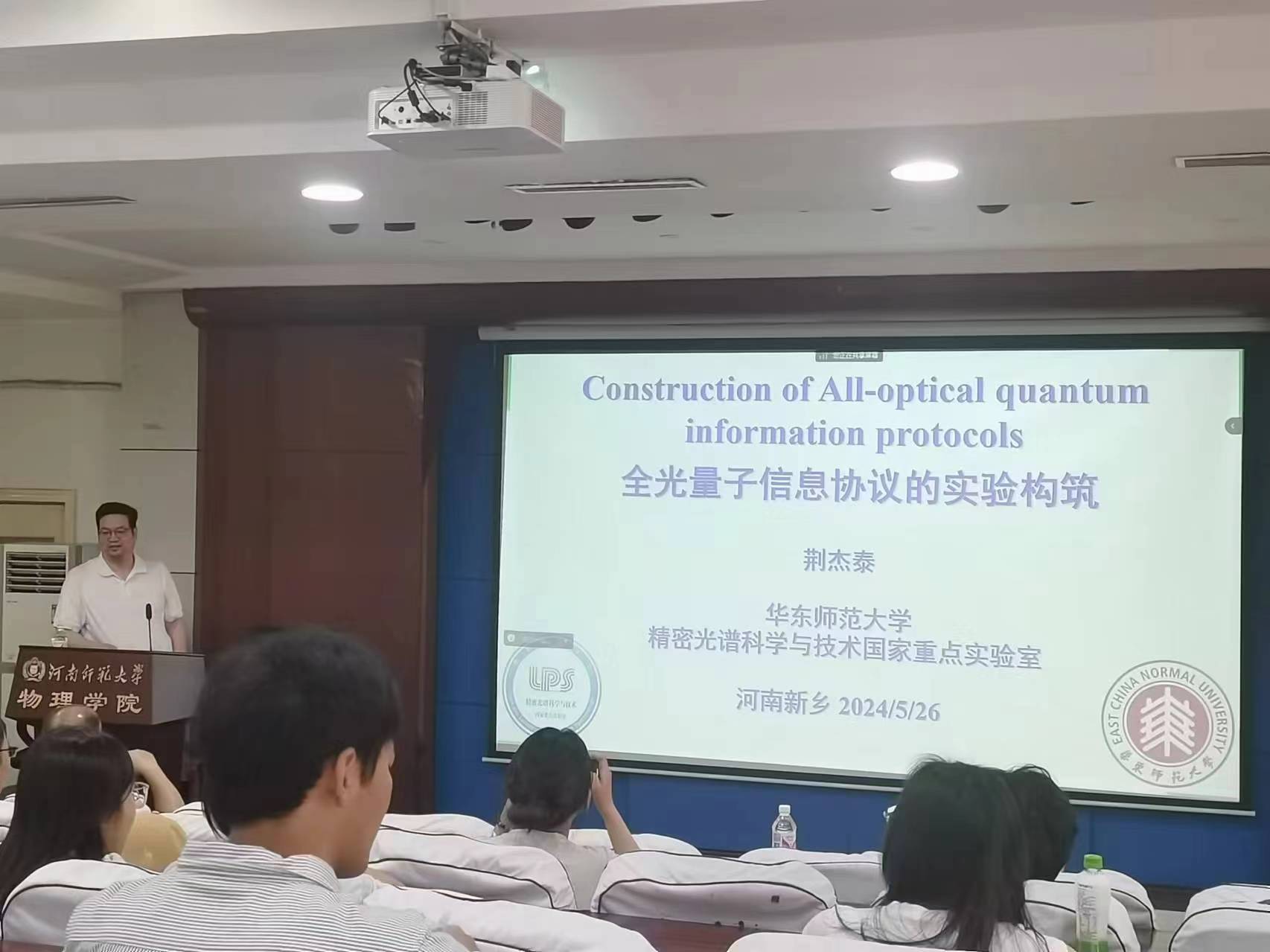 5月26日下午华东师范大学荆杰泰教授应邀为物理学院师生作了题为“全光量子信息协议的实验构筑”的学术报告,学院相关专业教师、研究生和本科生参加了此次报告。