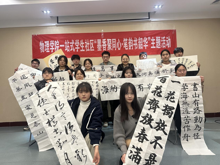 为弘扬中华优秀传统文化,营造书香浸润的文化氛围,物理学院依托一站式学生社区,于2025年3月6日举办“墨香聚同心,笔韵书韶华”书法撰写主题活动。此次活动以“文化润心,笔墨传情”为目标,旨在通过跨学科、跨院系的交流互动,打破专业壁垒,营造开放包容的社区文化氛围。