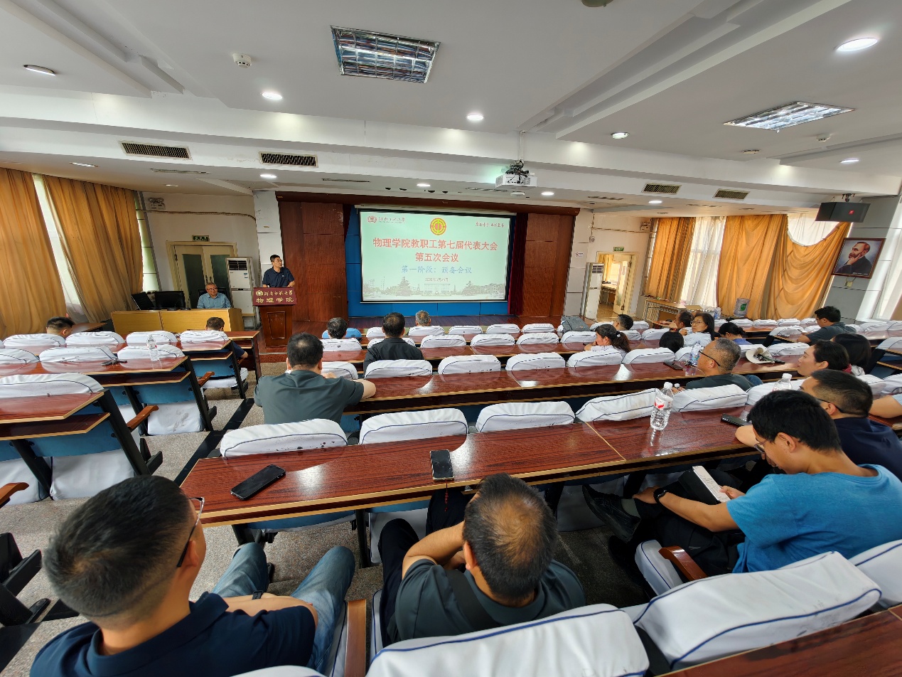 5月26日下午,物理学院教职工第七届代表大会第五次会议(含预备会议)在物理南楼二楼报告厅成功召开,物理学院全体领导班子、30名教职工代表参加了会议,会议由学院工会主席、副院长刘起胜主持。