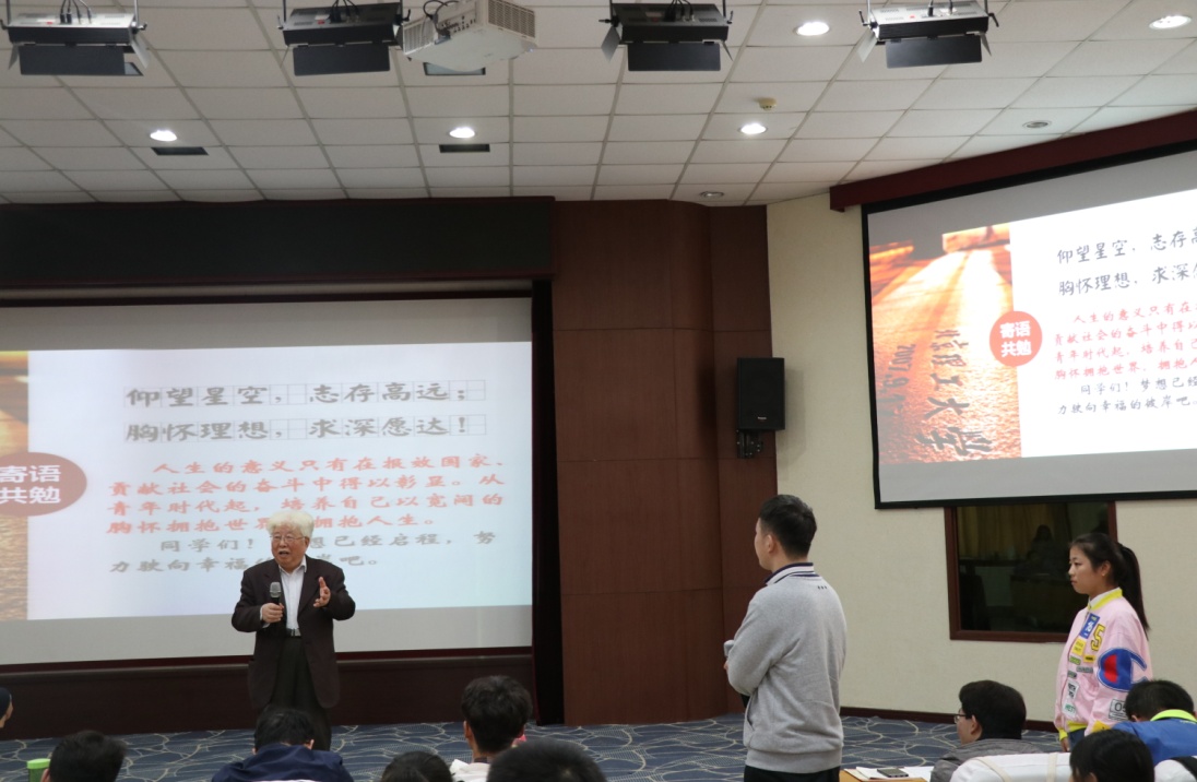 报告会前,同学们参观阅览了周立伟院士的读书笔记、写作手稿、著作等珍贵的学术资料。从“我为什么上大学?我学习目的是什么?我将成为什么样的人?”三个问题开始了精彩的报告。报告以成长须立志高远、成才须笃学诚行、成功须恒心毅力为三个篇章,周立伟院士以自己的经历为例,详细讲述了成长、成才、成功的深刻内涵。在报告中,周院士用志、勤、识、恒、法、创六个字向在场师生阐述了有志则有为;有勤则有才;有识则有求;有恒则有成;有法则有能;有创则有新的六句箴言。最后周院士向大家送出寄语,仰望星空,志存高远;胸怀理想,求深愿达!