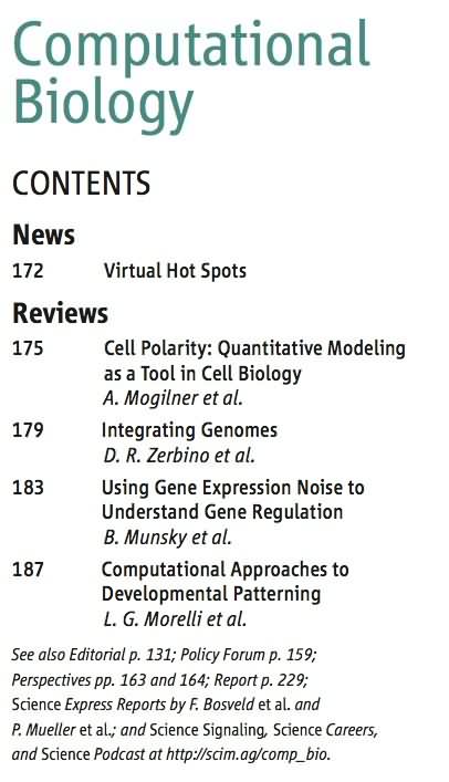 中国在计算生物学(或者系统生物学)领域的研究已经大大落后于国际,希望《科学》杂志的综述能引起国内学者对这一研究方向的关注。