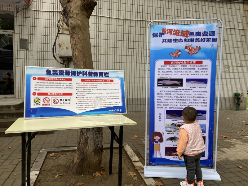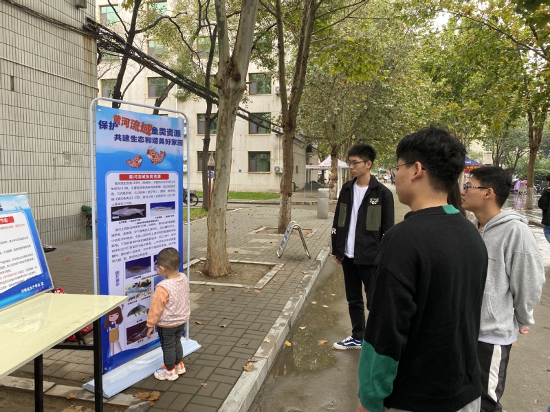 活动展出展板及展架共2块。宣传展架主要介绍了黄河流域鱼类资源的相关科普知识,如黄河鱼类的分布特征及其形态等内容,部分图片还来源于Betway官方客服水产学院鱼类资源调查队,图片生动直观,展板图文并茂。“鱼类资源保护科普教育宣传栏”则从保护鱼类资源的重要性、禁捕标识及法律法规方面,通过浅显易懂的科普知识吸引了过往学生驻足浏览,现场学习氛围浓厚。活动引导高校学生树立黄河流域资源保护观,增强了学生对黄河流域鱼类资源的保护意识。
