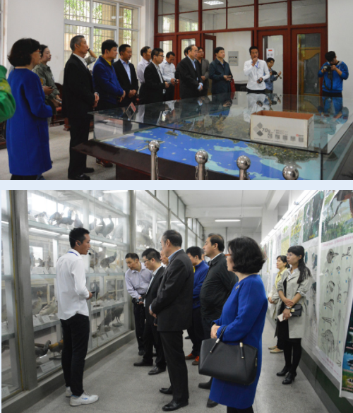 4月26日上午,河南省劳模事迹宣讲团成员一行参观我校生物标本馆。宣讲团成员、信阳市潢川县驻郑州农民工党支部书记黄久生,南阳市方城县杨楼乡第一中心小学教导主任郭春鹏,中平能化集团七星公司开拓四队“白国周班”班长白国周,登封市大金店镇梅村社区卫生服务站站长郭光俊,河南新城建设有限公司项目经理李江福,郑州市公安局公安交通管理局交警五支队交警杨华民等6名全国劳动模范莅临标本馆参观,河南省教科文卫体工会主任符明轩,河南省总工会宣传教育部部长张培元,我校工会主席岳杰勇,副主席孙玉珍、宋卫平,我院党委书记马新峰、标本馆馆长王艳梅等领导老师陪同。