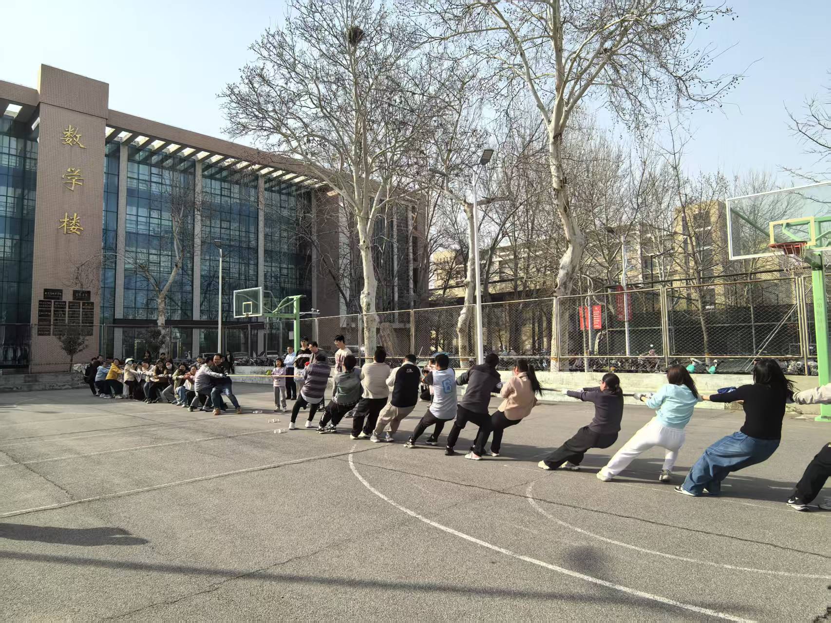 为丰富教职工业余文化生活,增强团队凝聚力,3月22日下午,数学与统计学院分工会于数学楼前排球场举办“绳采飞扬,合力‘统’心”拔河比赛。活动由院党委副书记、分工会主席王岩主持,全体教职工踊跃参加。