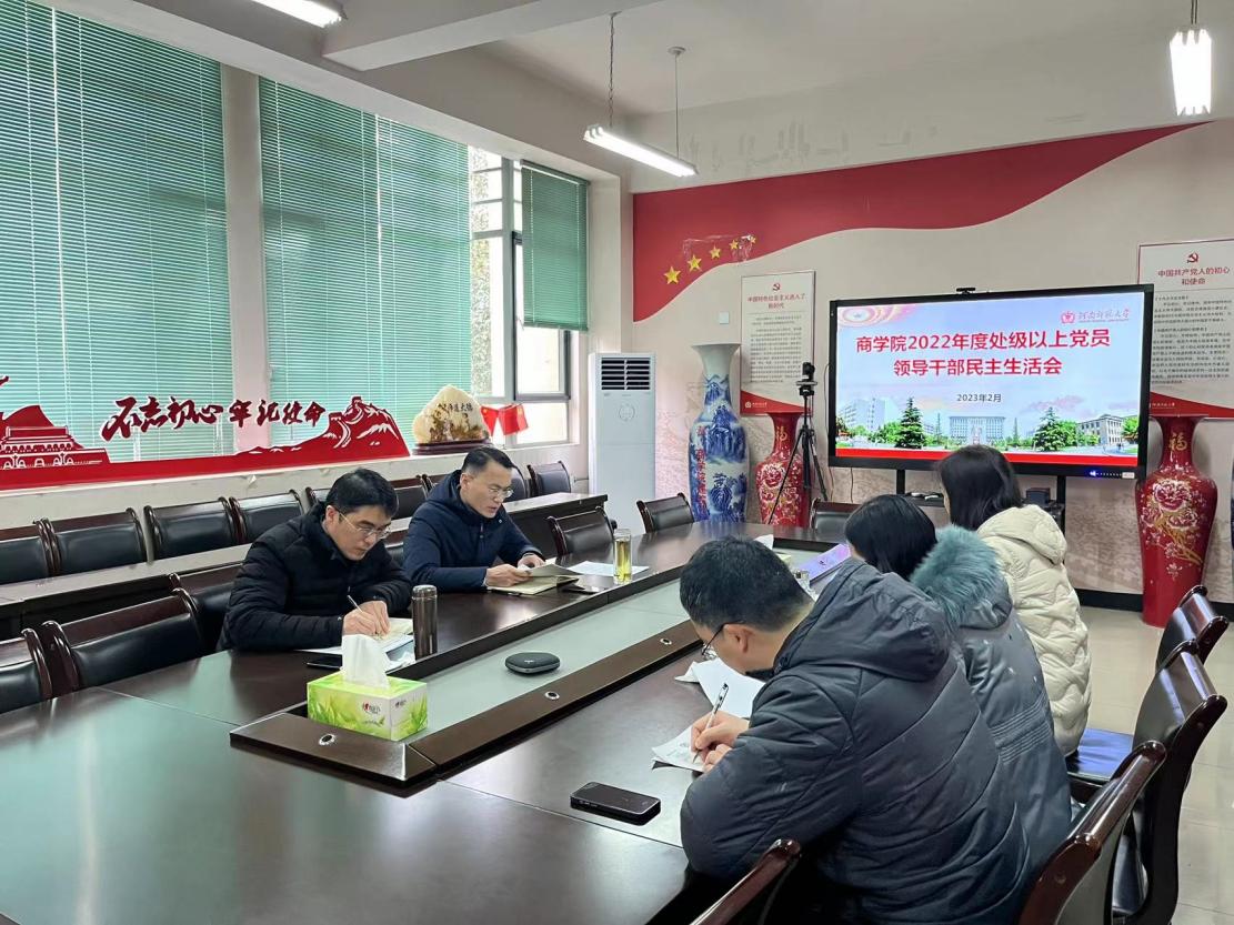 2月9日下午,商学院党委在学院二楼会议室召开2022年度处级党员领导干部民主生活会。学院处级以上党员领导干部参加了会议。会议由学院党委书记李志前主持。