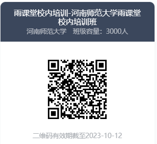 请各位老师提前扫码加入本校雨课堂培训班级,用于进行培训资料的查收及相关直播的回放。