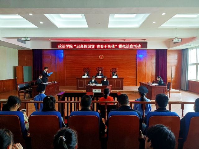 为普及法律知识,提高大学生的法律意识及辨别是非的能力,进一步提升大学生法律素养,增强大学生风险意识和责任意识,有效遏制非法“校园贷”和电信诈骗等违法现象在高校的生存空间。政法学院于4月22日中午在向知楼504教室举办“远离校园贷,青春不负债”模拟法庭活动。党委保卫部部长郭衍普、党委学工部副部长王星举应邀出席,政法学院全体教师和各专业学生参加了本次活动。