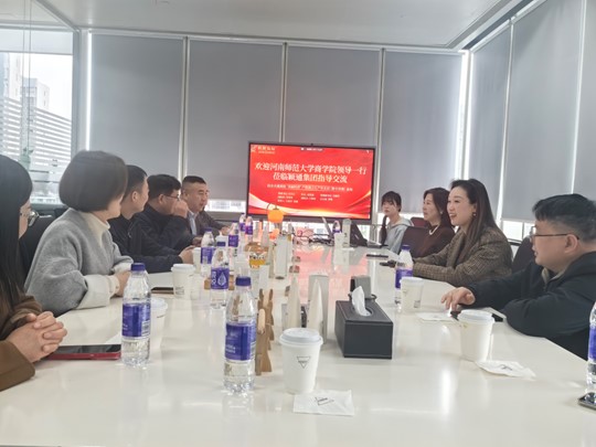 会议伊始,颖通集团负责人对商学院一行表示热烈欢迎。随后,双方围绕美丽经济,共同探讨高校人才培养使命转变问题,分享校企合作情况。刘英基指出,学院始终秉持以人才培养为中心、以科学研究为基点、以社会服务为标准的高校使命,并阐明了学校生源优势和商业英才实验班合作项目内容。他希望与企业保持长期良好合作,深入挖掘产业市场人才需求,将“走出去”“请进来”相结合,双管齐下构建双师型专业课堂,探索合作共赢新模式。企业负责人详细介绍业务布局、行业活动、产品研发等企业基本情况,表示企业将在产品推广、直播带货、实习实训等方面与学院开展相关合作,帮助学生深入了解产品运营架构,为学生提供多元化的实习和就业机会。最后,马淑明表示学院将推荐5-10名优秀学生进入企业,同企业携手促进学生在参与生产性实训中,培养商业头脑,锻炼实践才干。本次会议圆满结束。