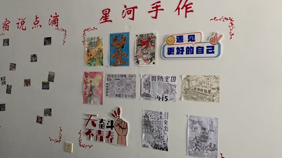 展览墙分为“宿说点滴”“星河手作”“平仄流年”“心象视界”四个主题展区,涉及摄影、书法、诗文、绘画、手工作品等,力求最大化地涵盖青年大学生喜闻乐见的文艺形式。建设展览墙的通知一经发布,便引发了社区学子的热烈反响。在楼管会的动员下,众多学子积极响应、踊跃参与,纷纷拿出宿舍集体或个人的 “压箱底” 精品力作,为展览墙建设倾注热忱、贡献力量。在宿舍风采影像展区 “宿说点滴” 中,一张张温馨的宿舍生活照片,记录着同学们朝夕相处的点滴瞬间,吸引了不少同学驻足观看,回忆起自己的宿舍故事;在文学书法展区“平仄流年”中,同学们通过书法的形式纷纷表达对祖国风调雨顺、国泰民安的美好祝愿。社区指导教师邢凯表示,未来将持续完善展览墙建设,不断优化布局,长期征集优秀作品,定期更新展示内容,促进不同社区、学院、宿舍学生的思想碰撞、交流互动,推动社区育人工作及文化建设迈向新高度。