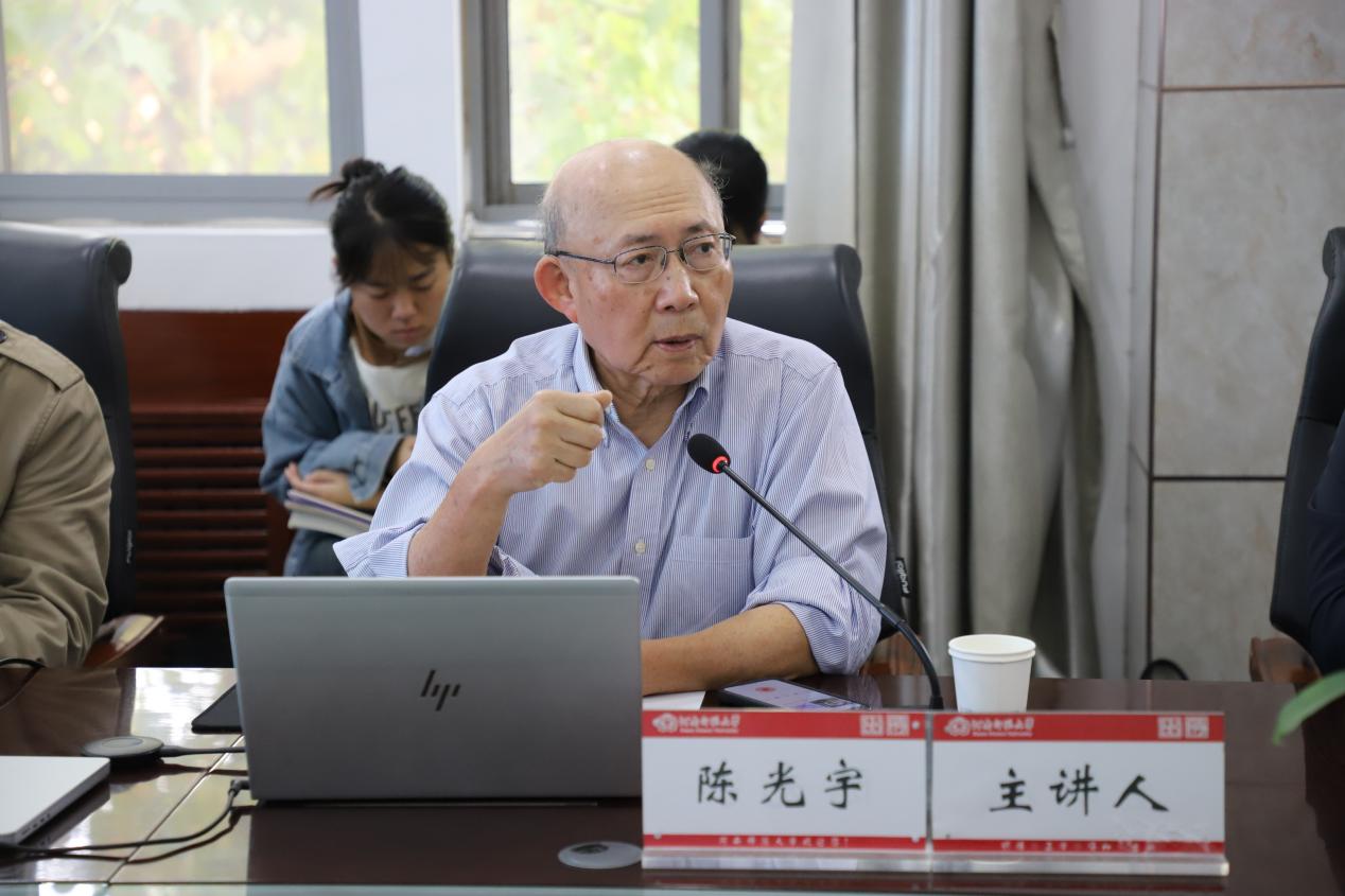 11月1日上午,美国新泽西州立罗格斯大学陈光宇教授应邀做客“卫风讲堂”,在崇文楼二楼会议室为文学院师生作题为“甲骨兆辞文字构型与功能研究”的学术讲座。讲座由我校甲骨智能计算实验室主任李雪山教授主持,学院师生积极参与学习。